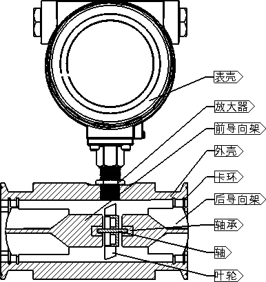 在管道中心安放一个涡轮,两端由轴承支撑。当流体通过管道时,冲击涡轮流量计叶片,对涡轮流量计产生驱动力矩,使涡轮流量计克服摩擦力矩和流体阻力矩而产生旋转。在一定的流量范围内,对一定的流体介质粘度,涡轮流量计的旋转角速度与流体流速成正比。由此,流体流速可通过涡轮流量计的旋转角速度得到,从而可以计算得到通过管道的流体流量。